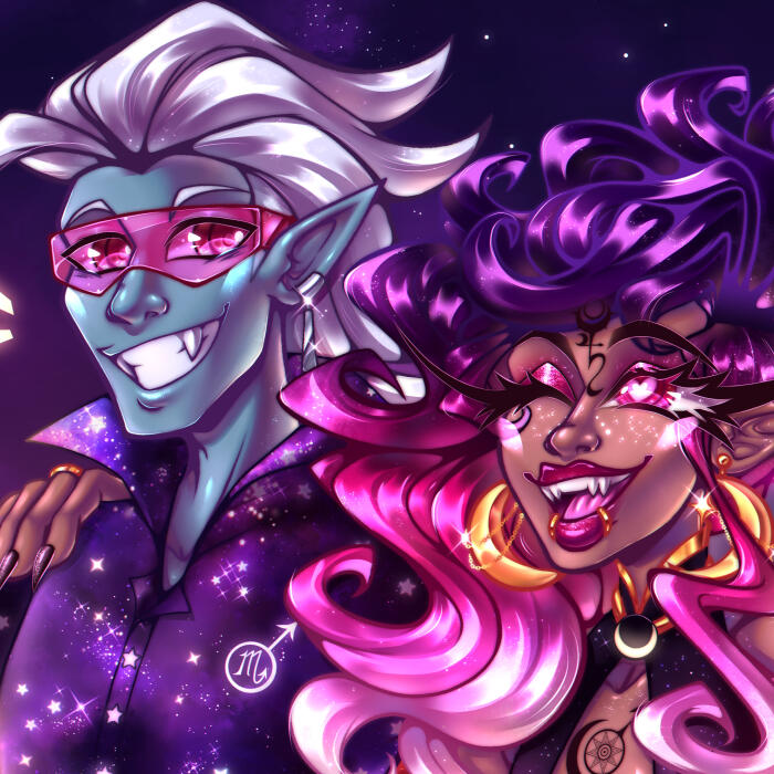 | Glowy/neon aesthetics | Character interactions (OC + OC, OC + Canon) | Unsanitary content / themes |
